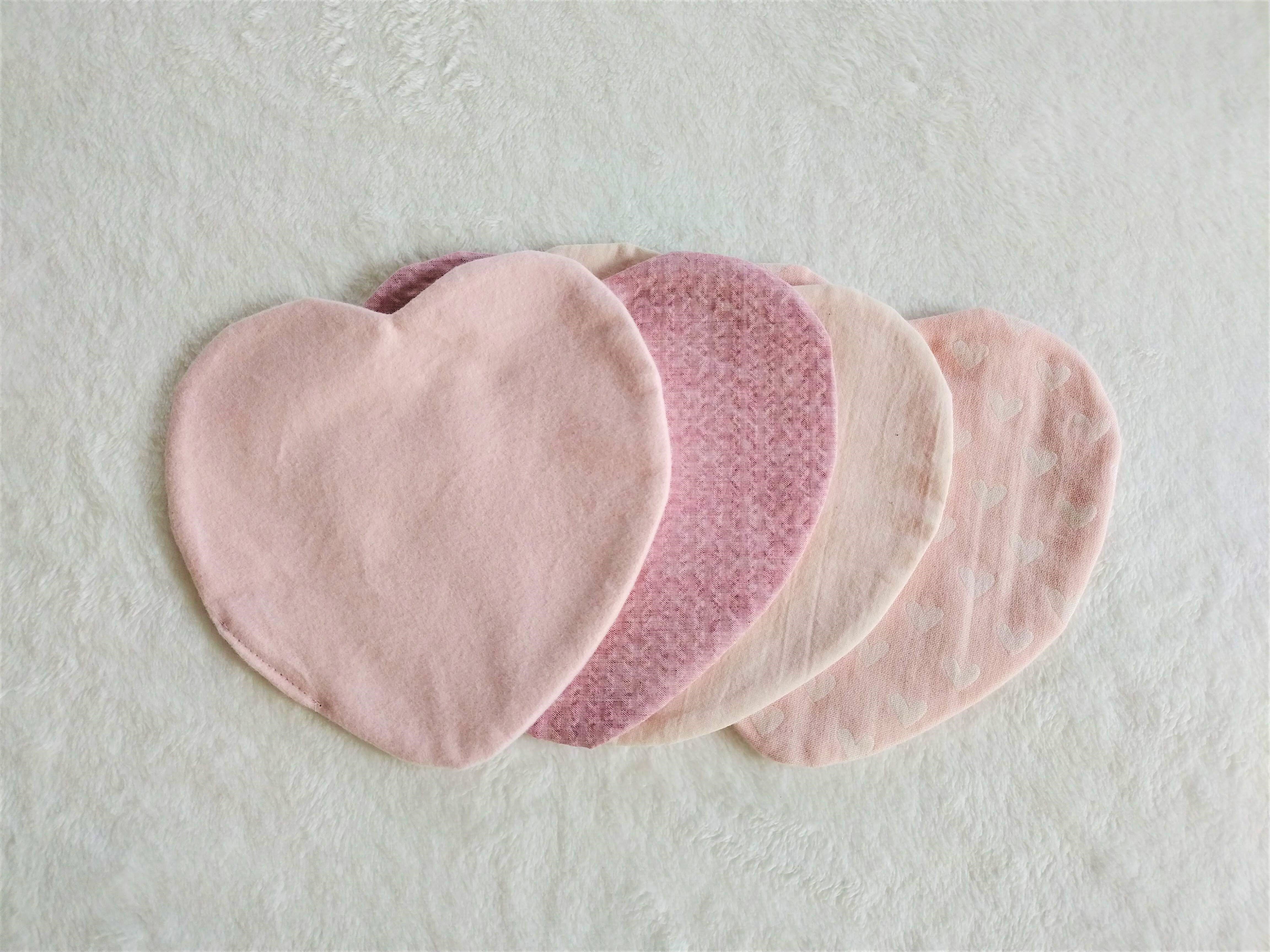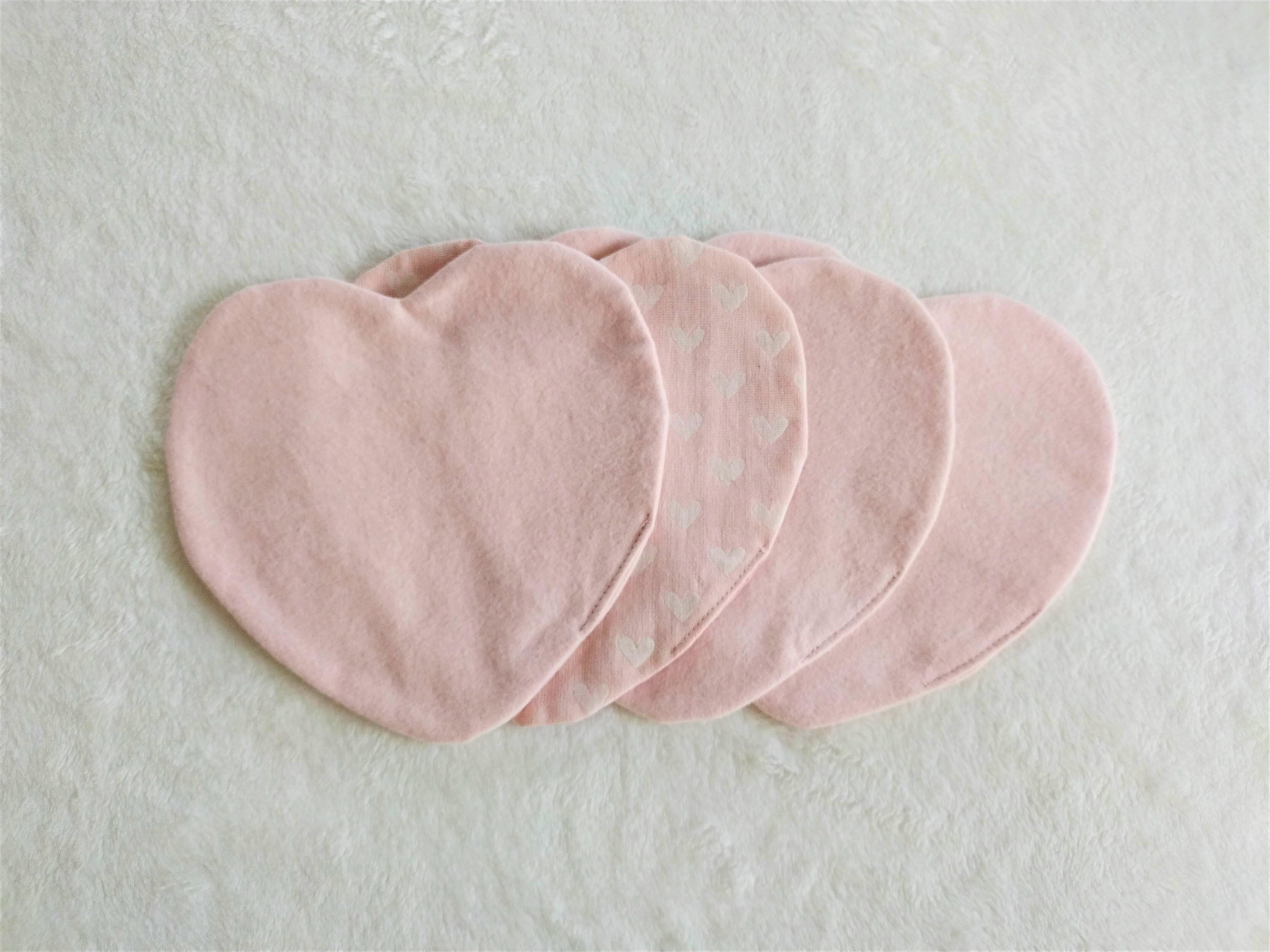 優しい素材、優しい手触りのハート型布ナプキンです。ハンカチタイプで、ジャバラ型に折りショーツにあてて使用します。付けていることを忘れてしまうほどの心地良さと柔らかさが生理の不快感を軽減します。ネル×ネル、ネル×植物染めオーガニックコットンが2枚(色おまかせ)、ネル×二重織ガーゼ の4枚セットです。